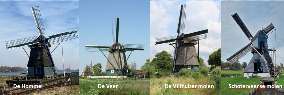 poldermolens (opvoeren van water). Ze zijn verschillend in grootte maar