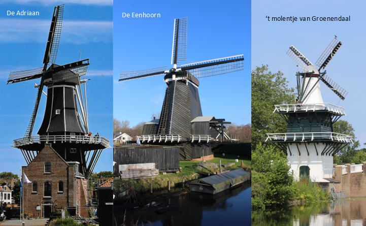 De Adriaan, De Eenhoorn en 't molentje van Groenendaal zijn stellingmolens